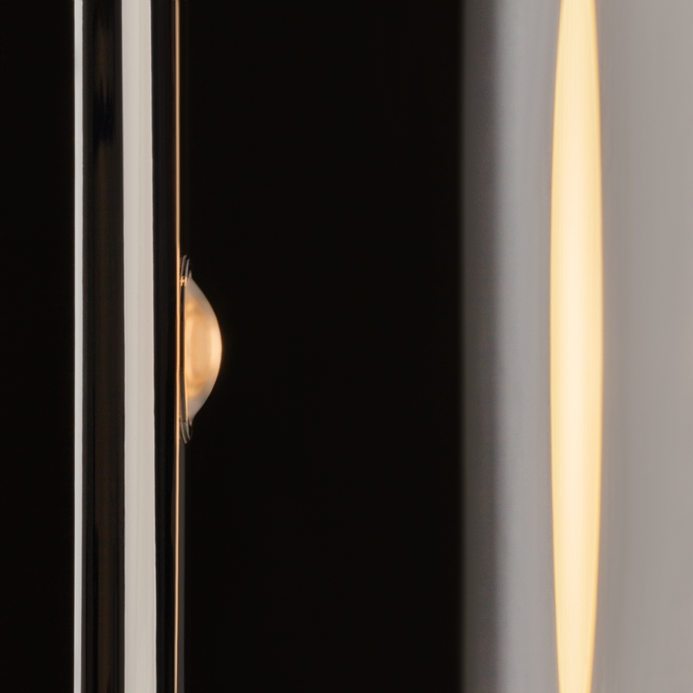 Серия бра Theorema выполнена в трех цветах с глянцевым финишем: черный, хром и золото. Геометрические формы и минималистичный дизайн удачно дополнят любой интерьер, добавив изящных световых акцентов. Настенные светильники создают значительный световой поток, подходящий для зонирования помещения.