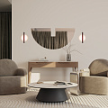 В дизайнерском решении использован переотраженный свет, создающий акцентный круг света на стене с деликатным свечением.
