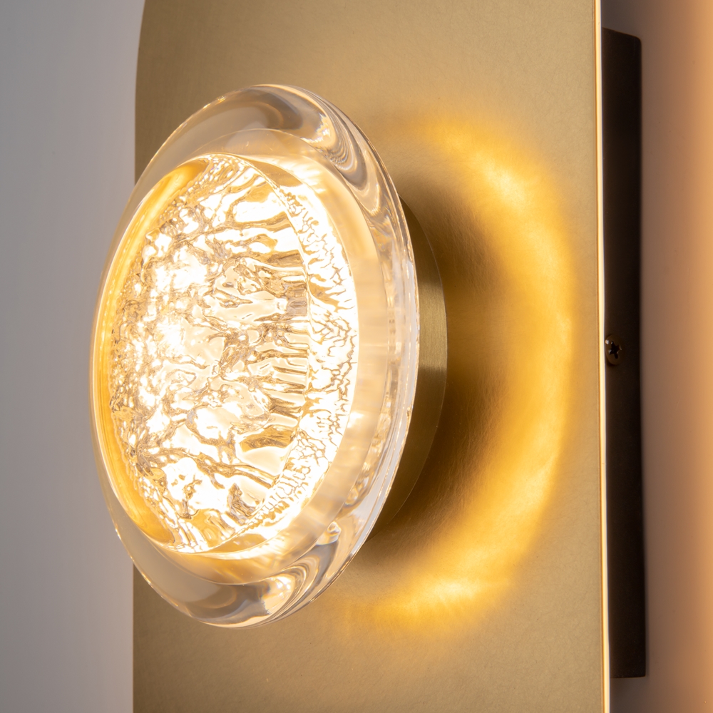 Двусторонний LED модуль обрамлен двумя плоскими плафонами из высококачественного акрила со сложным, актуальным паттерном на поверхности. Из одинарных плафонов с двумя диаметрами легко создавать композиции.