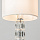 Сочетание хромированной арматуры и белых тканевых абажуров на ПВХ-основе.