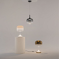 Начало серии берет от образа парящего над столом сияющего шара, который был реализован в настольных светильниках. Этот эффект достигнут благодаря оригинальному размещению LED-платы в основании светильника, прозрачному корпусу, направленному вверх и затем переотраженному от цветного купола плафона свету. Элементы настольного светильника надеваются друг на друга без лишних креплений. Устойчивость конструкции обеспечена широкой поверхностью соприкосновения и резиновыми прокладками между стеклянными элементами. В серии представлены настольные светильники двух форматов: полноразмерная и уменьшенная версии.