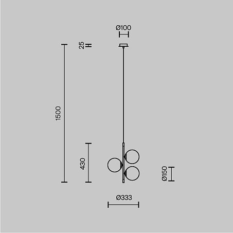 Металлическая арматура с плафонами-сферами из матового стекла формирует выразительный визуальный акцент.