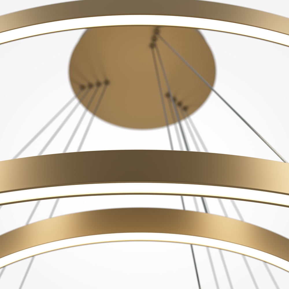 Простота визуального восприятия, совершенство округлой формы и аскетичный дизайн. Именно эти качества позволяют светильникам серии так легко приживаться в современных интерьерах. Модель выполнена в виде металлического кольца — минимальная высота такой конструкции удобна для использования в помещениях со средними и низкими потолками. Серия представлена светильниками различных размеров в трех популярных цветовых вариациях: белый, черный и оттенок латуни. Группируя несколько моделей, можно создавать эффектные световые инсталляции. Светильники серии отличаются простотой монтажа. LED-источник света с возможностью выбора необходимую цветовую температуру 3000К или 4000К на этапе монтажа. Светильники оснащены функцией диммирования, что позволяет регулировать яркость света. Для создания дополнительных композиций из светильников с двумя и тремя кольцами необходимо использовать набор потолочных креплений (приобретаются отдельно).