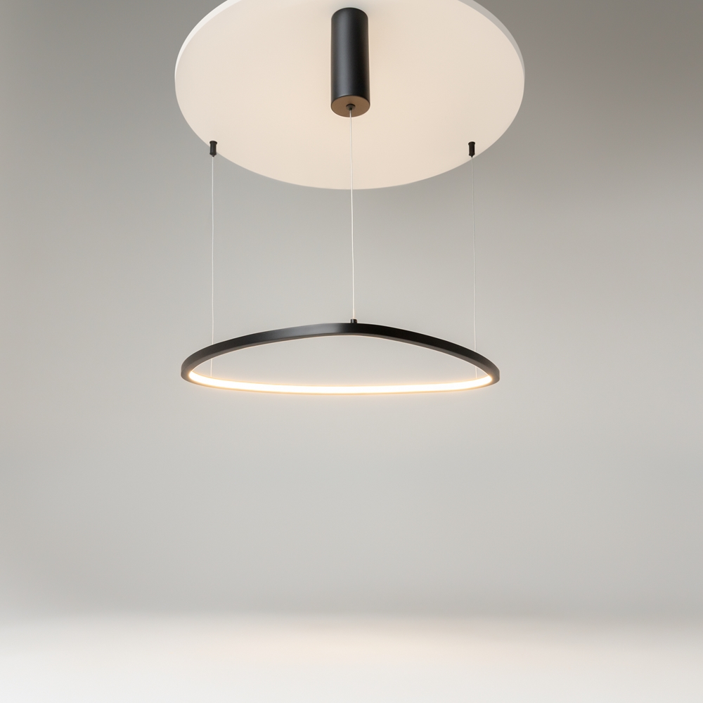 Тонкие тросы и обтекаемый силуэт создают иллюзию левитации светильника в пространстве.