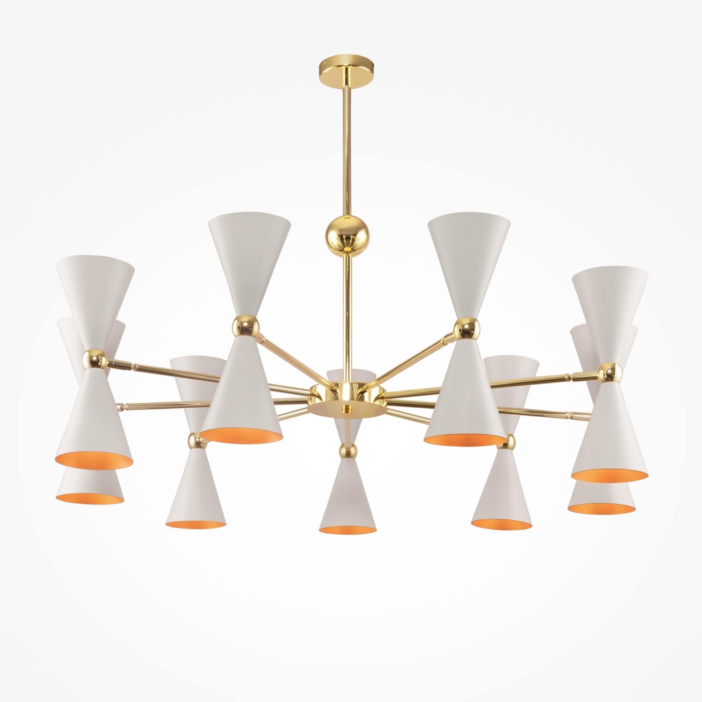 Классика современного стиля, отраженного в культовых романах о Джеймсе Бонде, послужила вдохновением для создания атмосферной серии светильников в ретро-дизайне. Названная в честь любимого коктейля агента 007, серия Vesper сочетает в себе сдержанную роскошь, лаконичные формы, классические дуэты оттенков и технологичный поворотный механизм. Серия состоит из моделей с семью, десятью плафонами и бра. Подвесные светильники серии Vesper оснащены вращающимися рожками, что дает возможность использовать направленный свет, зонируя гостиную или расставляя акценты в спальне.