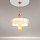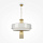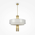 В центре композиции — россыпь цепочек, обрамленная белоснежным тканевым абажуром и металлической арматурой золотого оттенка.
