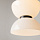 Светильник имеет уникальную конструкцию: два плафона из глянцевого белого стекла соединены металлическим диском. Этот лаконичный дизайн имеет утилитарную функцию: скрывает крепления основания и делает светильник устойчивым и надежным.