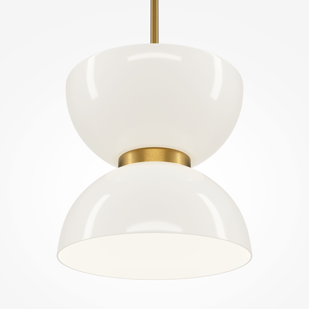 Светильник имеет уникальную конструкцию: два плафона из глянцевого белого стекла соединены металлическим диском. Этот лаконичный дизайн имеет утилитарную функцию: скрывает крепления основания и делает светильник устойчивым и надежным.