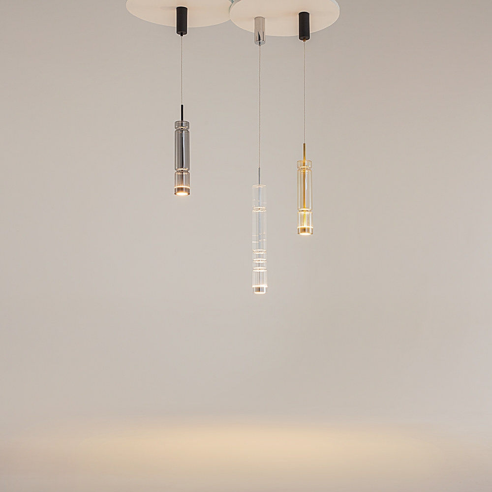 На создание серии дизайнера вдохновило архитектурное наследие Древней Греции, величественные, визуально невесомые, колоннады древнегреческих храмов. Название серии - Ordo (от лат. - порядок, ряд) - идеально подходит для описания этой серии подвесных светильников. Рифлёный декор в виде каннелюра и вытянутая форма стеклянного плафона напоминают ионические колонны храмов. Цвета плафонов также выбраны неслучайно - кристально-прозрачный, зеркальный дымчатый, золотистый коньячный. LED источник света - 1500 Лм, цветовая температура - 3000К. Плафоны представлены в двух размерах — вытянутые (683 мм) и укороченные (493 мм), что позволяет составлять композиции, например, в зоне спальни или гостиной. Цвета арматуры - глянцевый хром, шагреневый черный, сатинированная латунь. Высота подвесных светильников регулируется, максимальная длина провода - 3 метра, что позволяет использовать их в помещениях с высокими потолками.