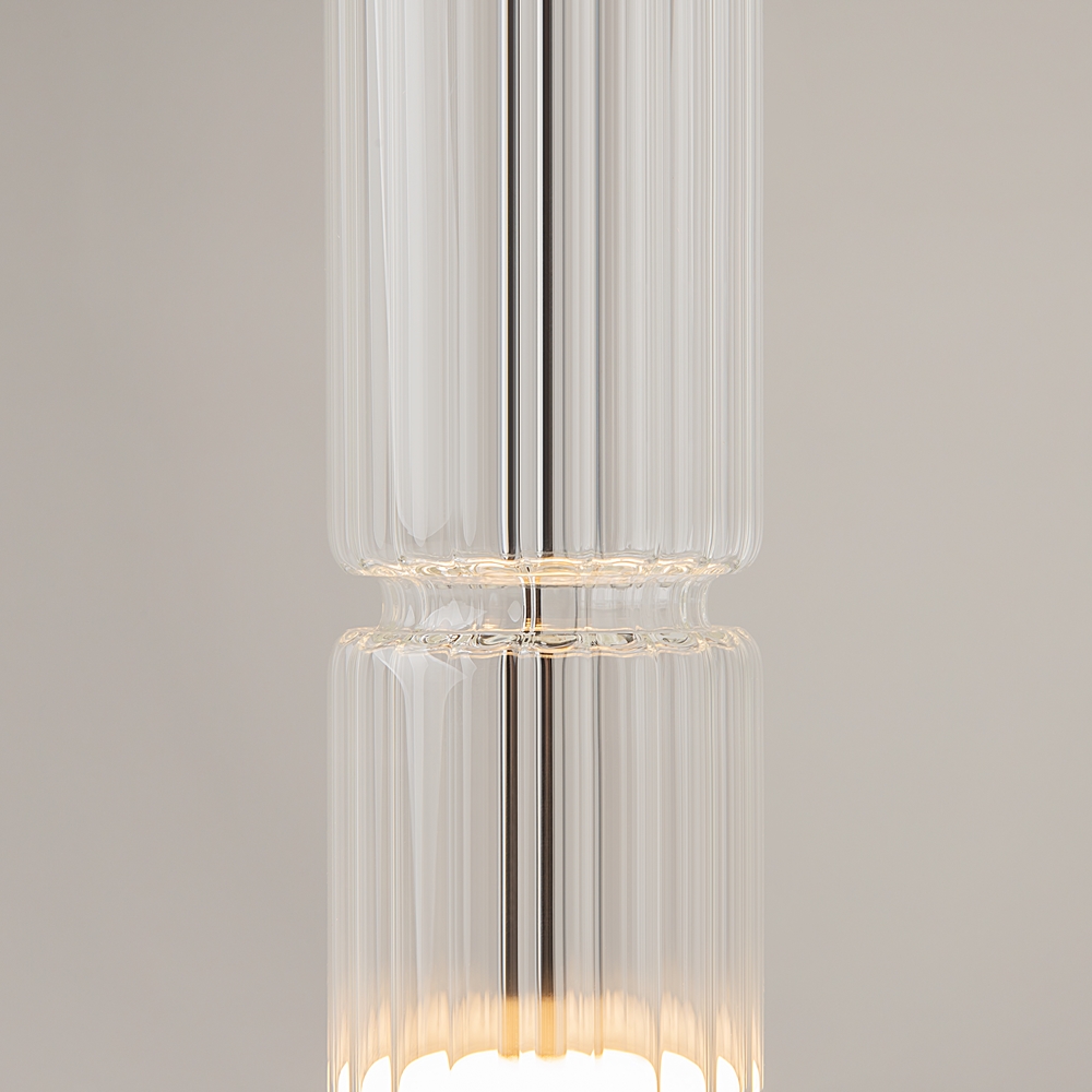 На создание серии дизайнера вдохновило архитектурное наследие Древней Греции, величественные, визуально невесомые, колоннады древнегреческих храмов. Название серии - Ordo (от лат. - порядок, ряд) - идеально подходит для описания этой серии подвесных светильников. Рифлёный декор в виде каннелюра и вытянутая форма стеклянного плафона напоминают ионические колонны храмов. Цвета плафонов также выбраны неслучайно - кристально-прозрачный, зеркальный дымчатый, золотистый коньячный. LED источник света - 1500 Лм, цветовая температура - 3000К. Плафоны представлены в двух размерах — вытянутые (683 мм) и укороченные (493 мм), что позволяет составлять композиции, например, в зоне спальни или гостиной. Цвета арматуры - глянцевый хром, шагреневый черный, сатинированная латунь. Высота подвесных светильников регулируется, максимальная длина провода - 3 метра, что позволяет использовать их в помещениях с высокими потолками.