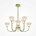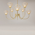 Традиционное сочетание блеска металла и глянца стекла. Металлическая арматура в цвете сатинированной латуни подчеркивает утонченность каждой детали. Оригинальные плафоны из глянцевого стекла обтекаемой формы с плавным градиентом от янтарного цвета к прозрачному создают многослойность визуального ряда.