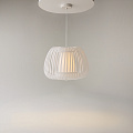 В отличие от традиционной техники, основа серии Kirigami не бумага, а органза. Тонко нарезанные полоски ткани собраны в куполообразный абажур с усечённой вершиной, что добавляет динамики дизайну и делает конструкцию визуально более воздушной. Серия представлена в двух цветах: монохромный белый и контрастный черный. Внутри абажура установлен белый хлопковый рассеиватель, скрывающий сменный источник света с цоколем Е27, который обеспечивает мягкое комфортное глазу освещение, создавая уютную и располагающую атмосферу. Металлическая арматура подвесных светильников и настольной лампы серии Kirigami окрашена в белый цвет с антибликовым покрытием.