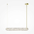 Металлическая арматура теплого цвета сатинированной латуни мягко контрастирует с холодной красотой стекла, создавая гармоничный баланс между теплом и холодом. Все модели оснащены встроенным LED-источником света с трехступенчатым переключателем цветовой температуры 2700-3000-4000К, с высоким индексом цветопередачи CRI>90. Подвесные модели с разборной штангой позволяют регулировать высоту, создавая кастомные световые композиции. Frostum — это не просто освещение, это зимняя сказка, застывшая в стекле и свете.