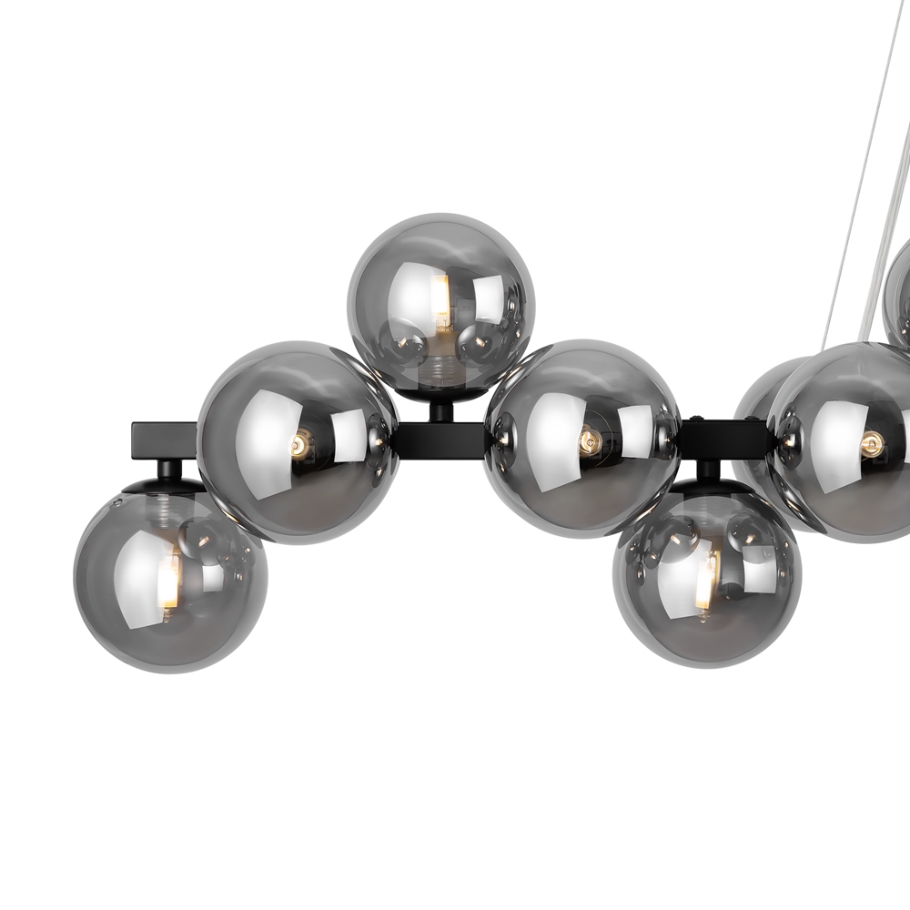 Масштабные скульптурные композиции, образованные многочисленными шарами из выдувного стекла, формируют неповторимый облик светильников серии. На полированных металлических ветвях установлены тонированные плафоны, которые мягко рассеивают и приглушают свет ламп. Модели серии представлены в трех цветах: золото, хром и латунь. Высота подвесных светильников регулируется длиной троса. Серия представлена потолочными, подвесными светильниками, и бра.