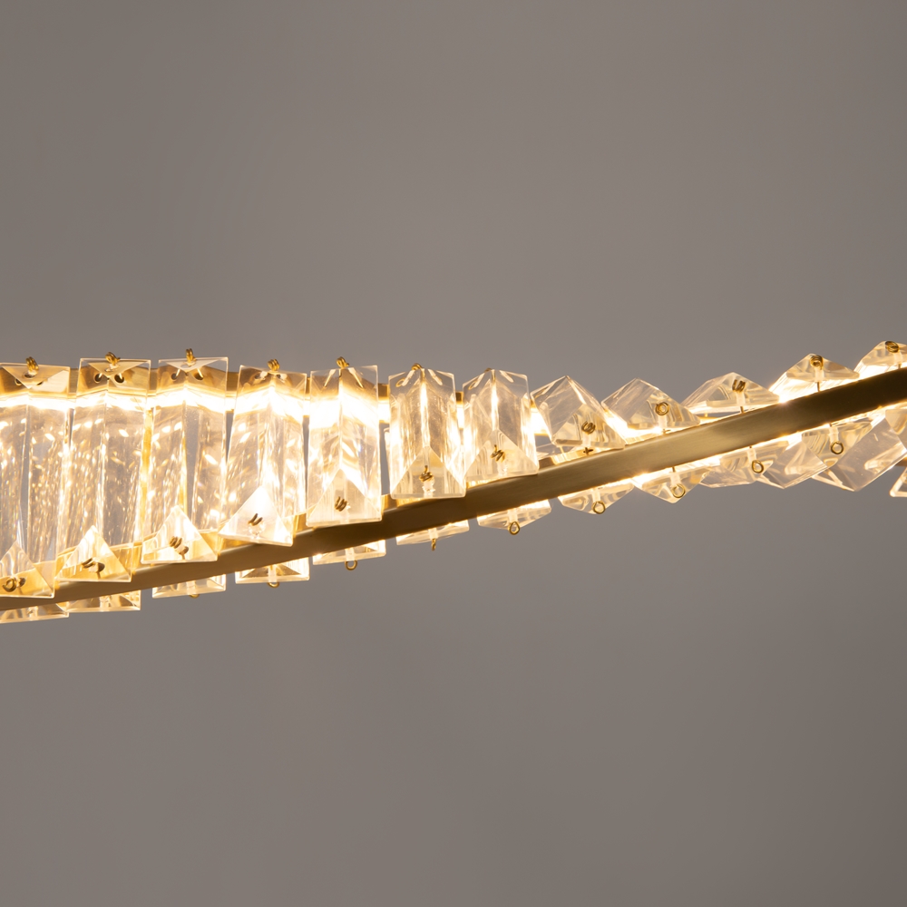 Яркий выразительный облик серии Krone - это новый взгляд на актуальные дизайнерские тренды. Главная особенность – асимметричное расположение хрустального декора. Трендовый прием позволяет получить интересный светотеневой рисунок, добавляет дизайну уникальность. Металлическая арматура латунного цвета обрамляет декоративные элементы подобно ювелирному украшению, создавая праздничный образ. LED-источник света обеспечивает равномерную яркую подсветку, подчеркивая оригинальный силуэт. Высокий индекс цветопередачи 90Ra не искажает восприятие оттенков. В серию входят подвесные модели различного диаметра и с разным количеством ярусов, подвесной светильник в виде спирали, а также вытянутые по горизонтали подвесные светильники разной длины. Эклектичный дизайн актуален как для современных, так и классических интерьеров: праздничного ар-деко, неоклассики, фьюжн, сдержанного контемпорари или mid-century.