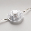 Сочетание хромированной арматуры и белых тканевых абажуров на ПВХ-основе.
