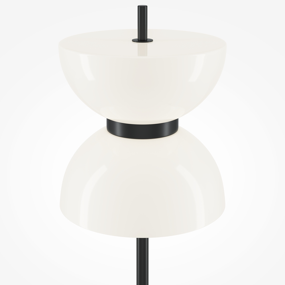 Светильник имеет уникальную конструкцию: два плафона из глянцевого белого стекла соединены металлическим диском. Этот лаконичный дизайн имеет утилитарную функцию: скрывает крепления основания и делает светильник устойчивым и надежным.