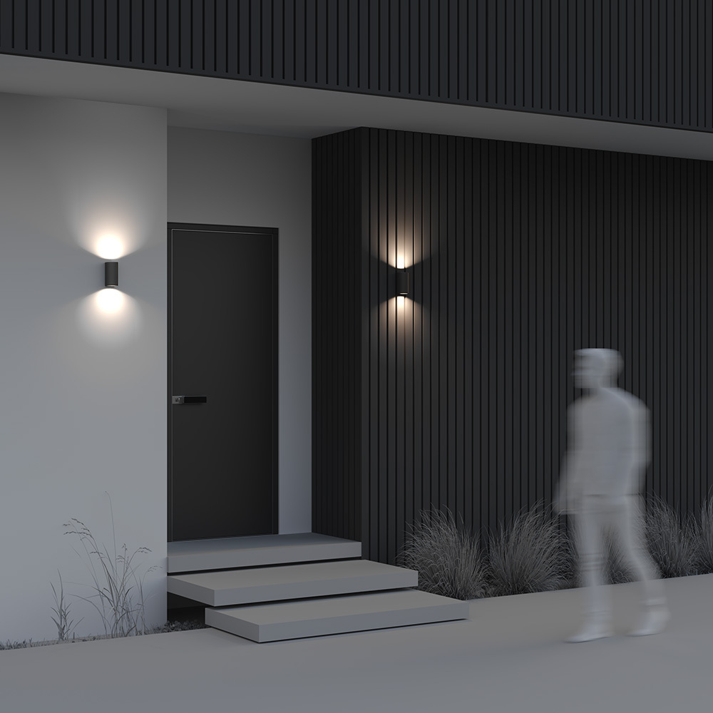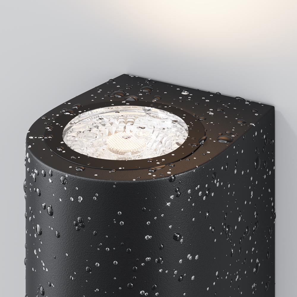 Алюминиевый корпус в черном цвете. Минималистичный дизайн. Высокий класс защиты IP 54. Источник света – лампа с цоколем GU10. В серии представлены модели с одно- и двунаправленным световым потоком.