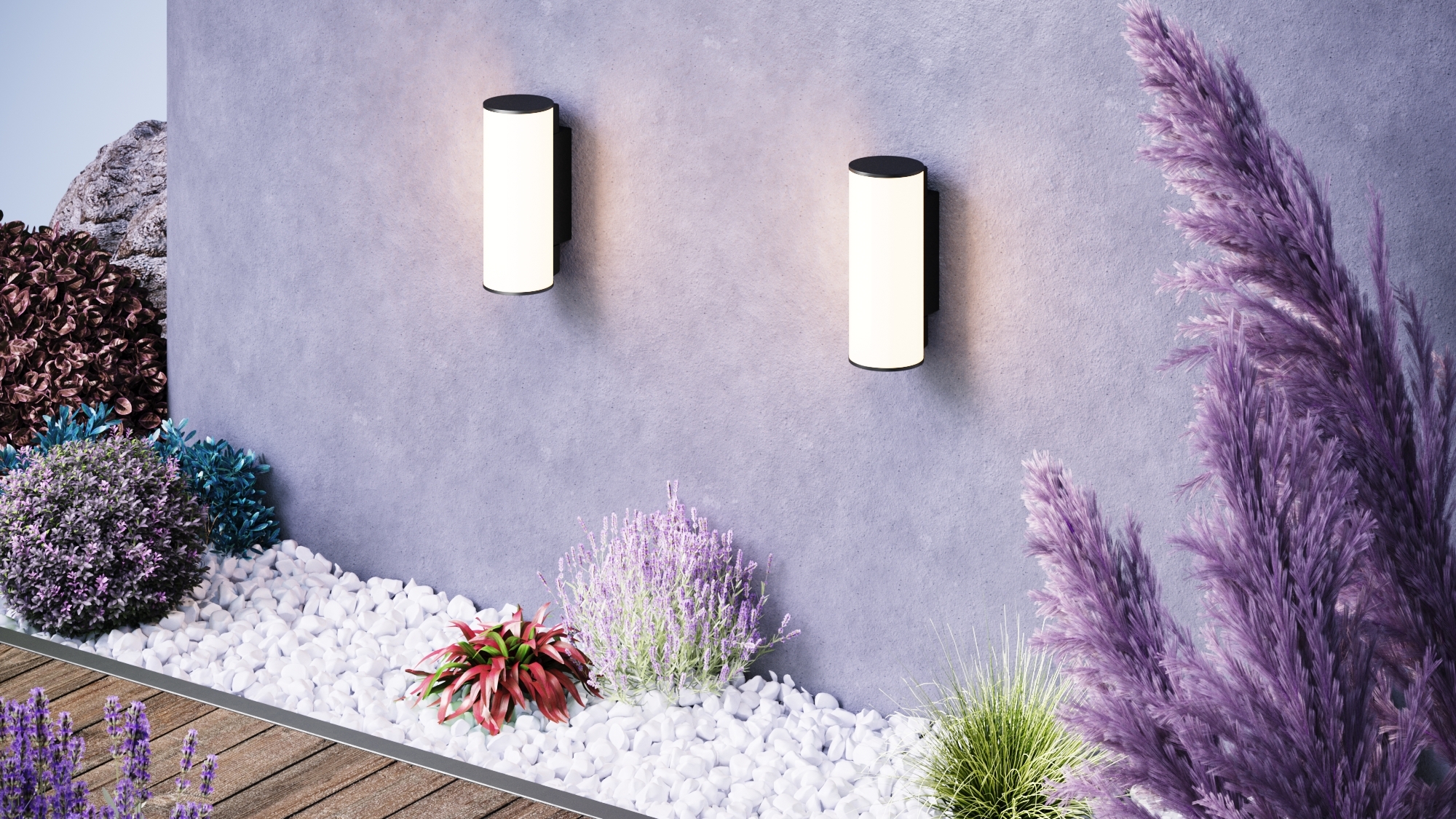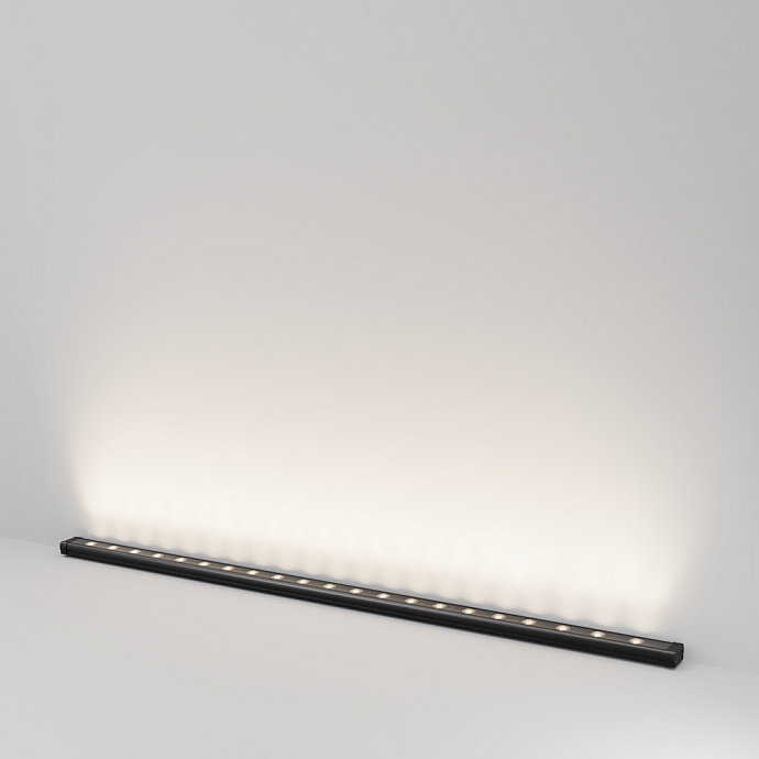 Серия Rock из алюминия цвета графит с округлым рассеивателем из пластика. Настенный монтаж. Дизайн создает единую линию света, идеально подходя для освещения фасадов и протяженных зон.