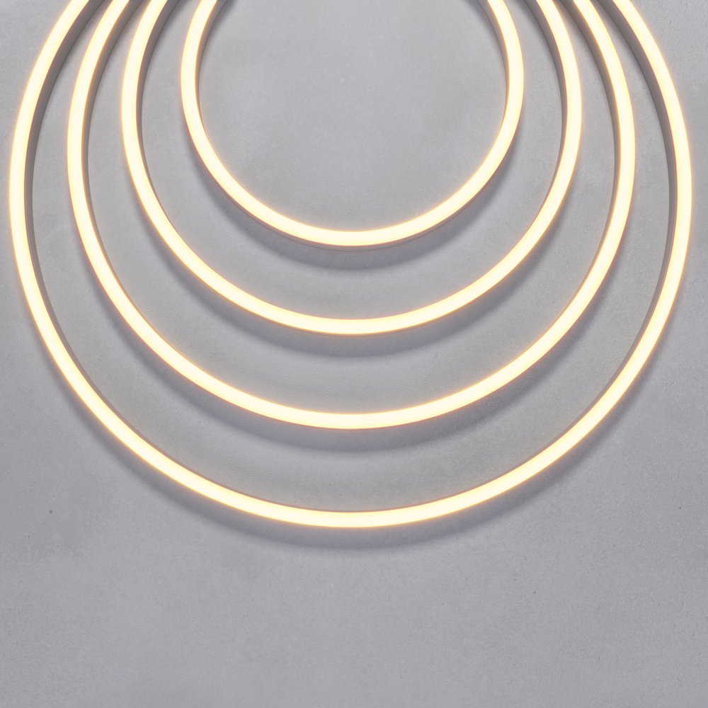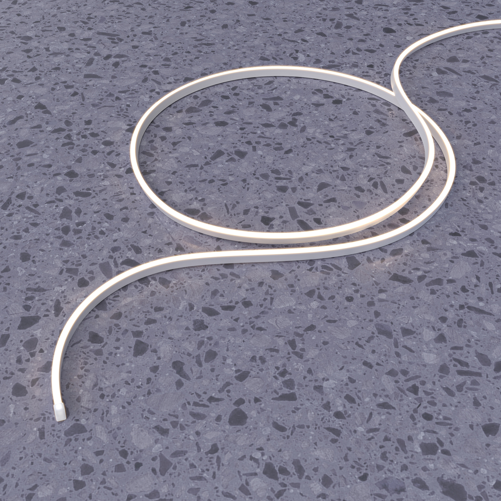 Гибкий неон с вертикальным изгибом позволяет создавать динамичные световые решения, огибая контуры в вертикальной плоскости. Мягкий рассеянный свет, направленный вверх, идеально подойдет для контурной подсветки потолков, ниш, элементов интерьера и фасадов зданий. Высокая степень защиты от пыли и влаги IP67 позволяет использовать неон как в сухих, так и во влажных помещениях, а также отлично подойдет для подсветки на улице.