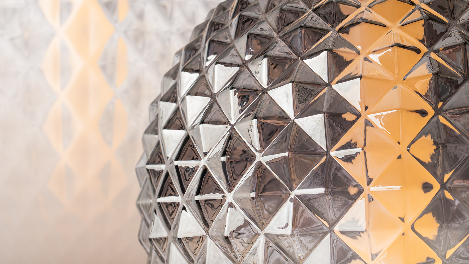 Оригинальный рельефный орнамент, отражающий световые зайчики по всей поверхности стекла