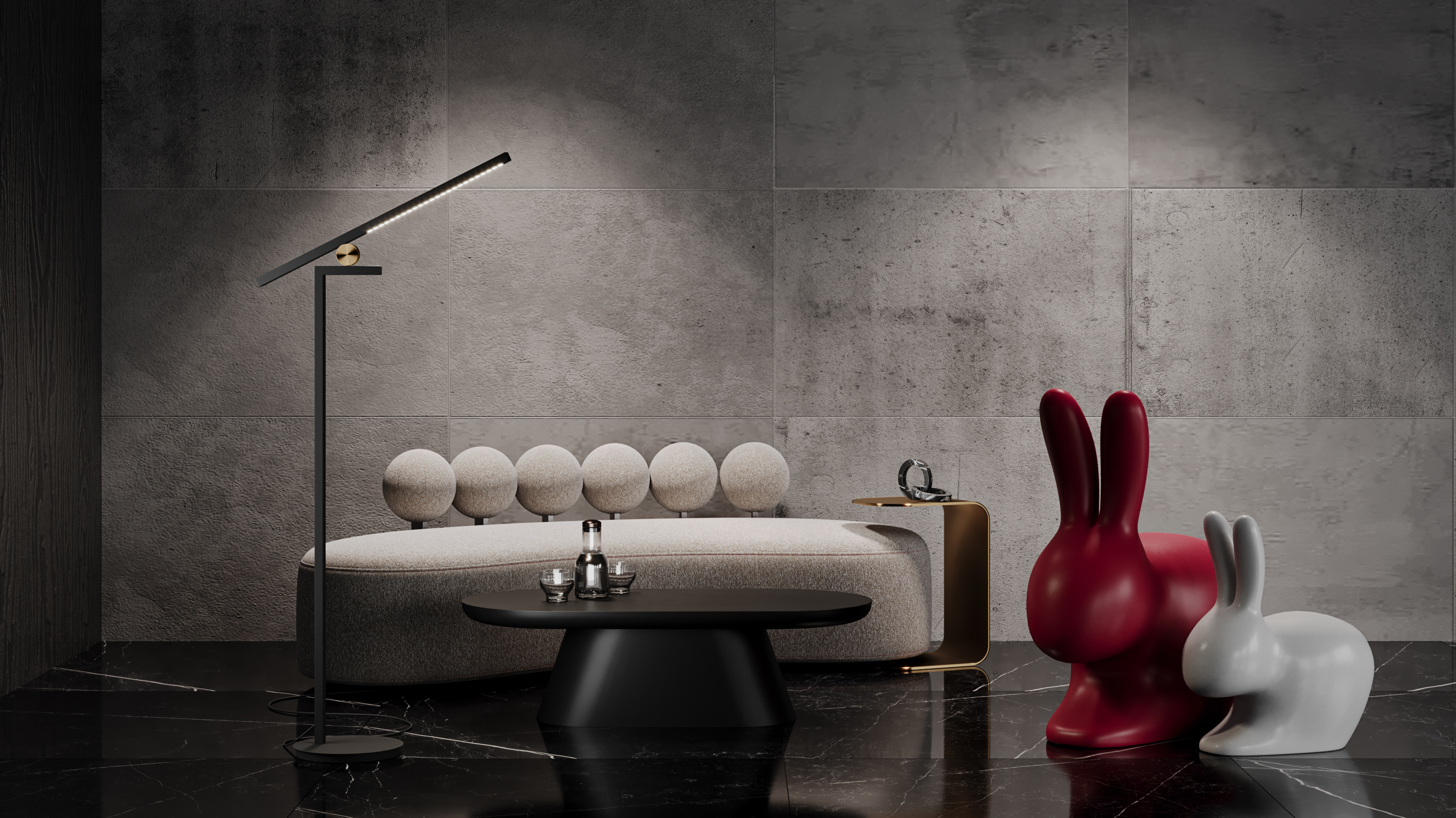 Идея, воплощенная в торшере ― забота о человеке, его удобстве, понимание эмоций. Идея совмещается с лаконичностью и элегантностью формы. Датчики реагируют на движение руки и позволяют диммировать освещение.