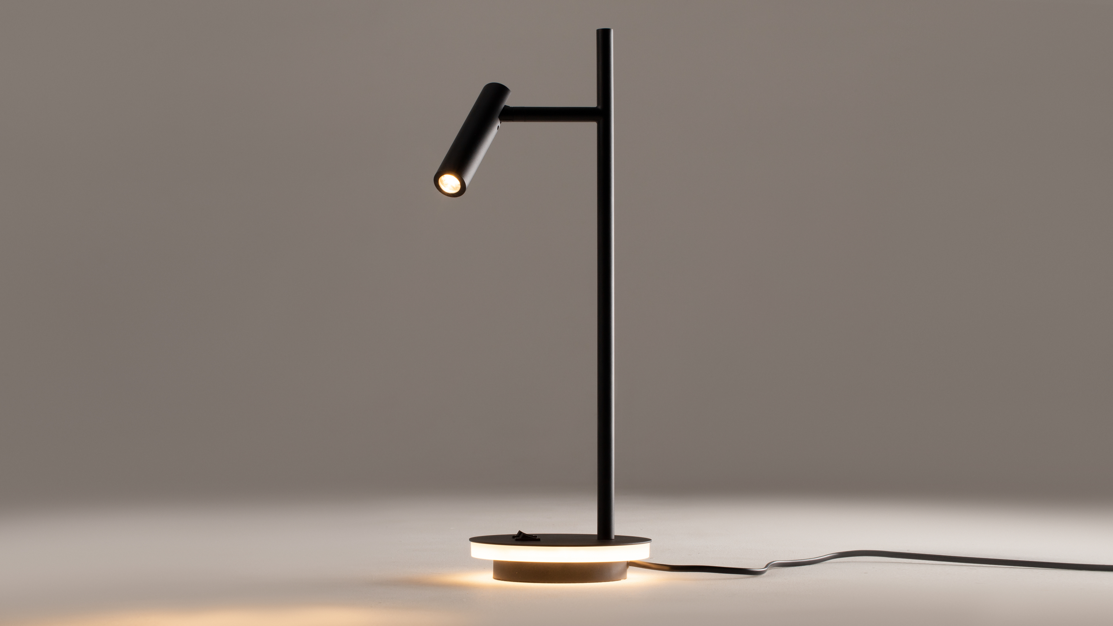 Многофункциональные светильники серии Estudo с декоративной подсветкой основания. Благодаря вращающемуся плафону-цилиндру регулируется направление светового потока. Модели серии доступны в двух цветах: черном и белом.
