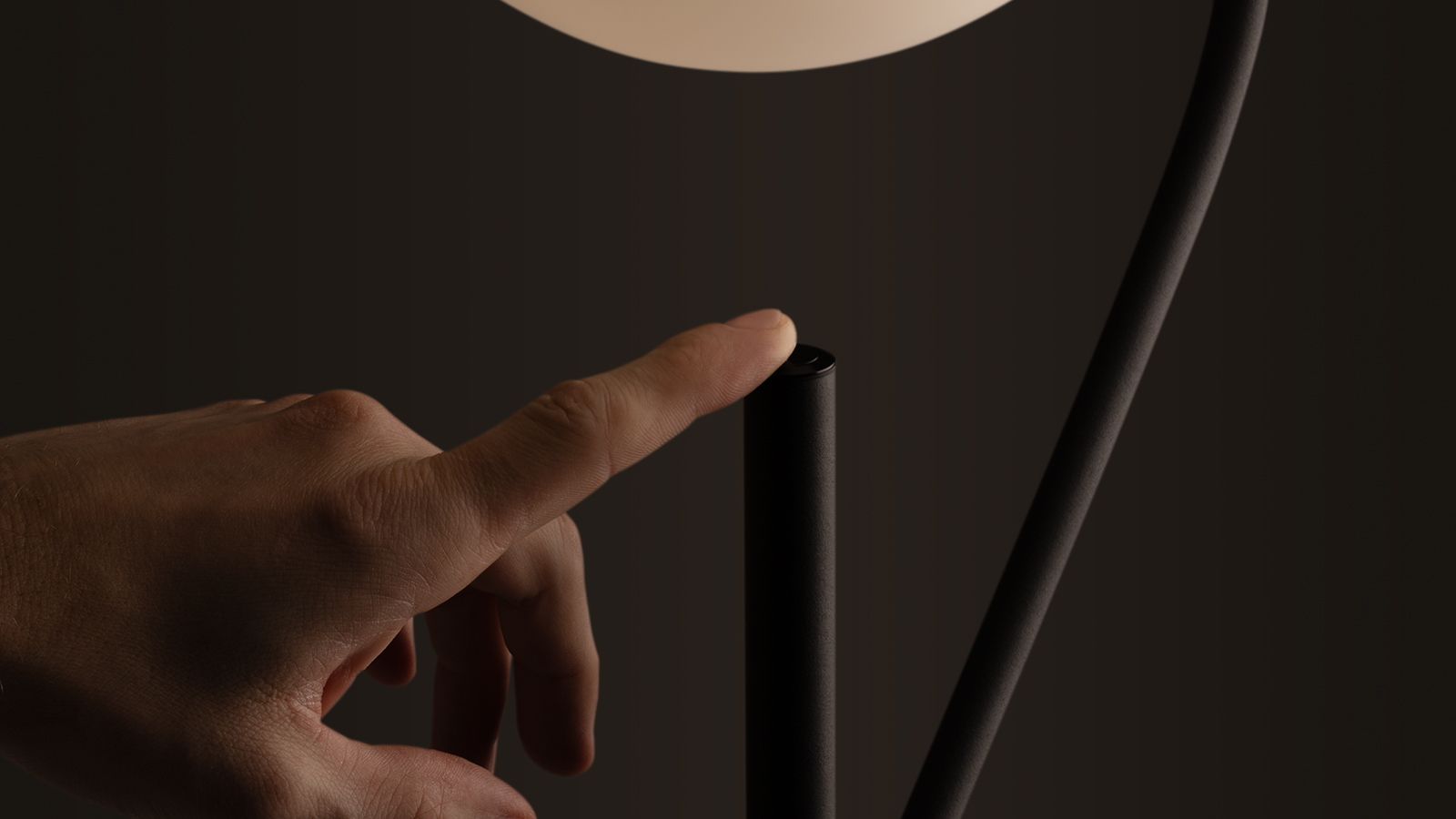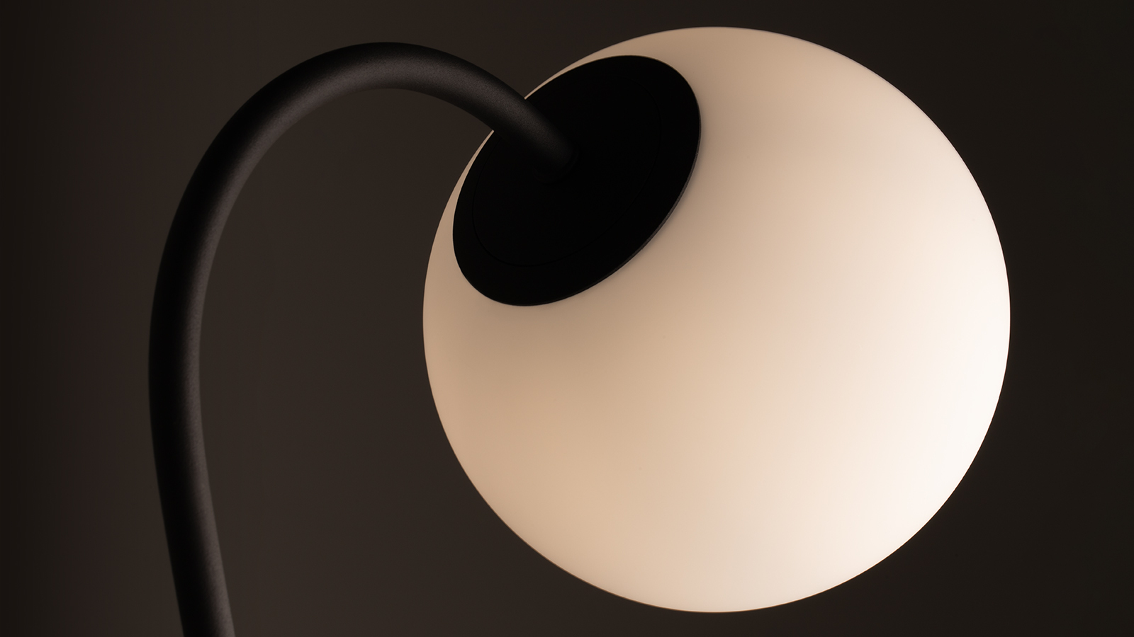 С помощью оригинальной конструкции светильник создает эффект левитации. Тонкая опора визуально исчезает, выделяется только парящий в пространстве шар света.