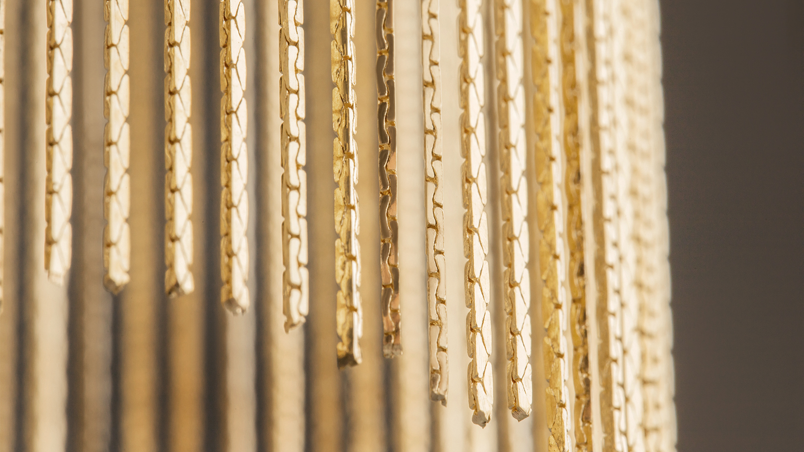 Коллекция светильников от Алексея Данилина. Автор сознательно противопоставил обильный, почти барочный декор из струящихся цепочек, отсылающий к тончайшим работам ювелиров, — и абсолютно лаконичный, почти минималистичный объем самого светильника. Это визуальное уравновешивание — ключ к коллекции