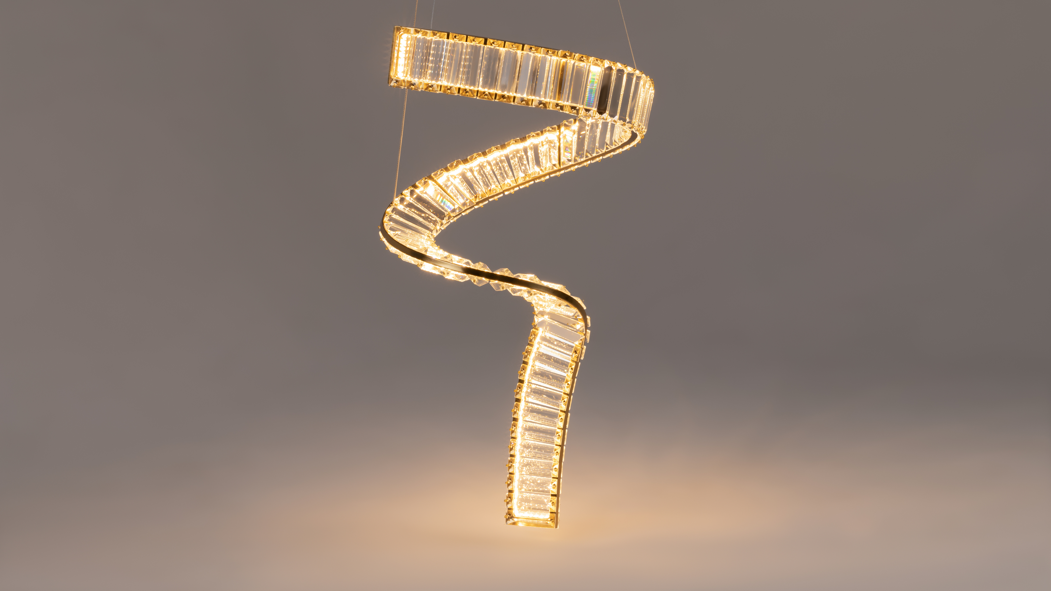 LED-источник света обеспечивает равномерную яркую подсветку, подчеркивая оригинальный силуэт. Высокий индекс цветопередачи 90Ra не искажает восприятие оттенков. В серию входят подвесные модели различного диаметра и с разным количеством ярусов, подвесной светильник в виде спирали, а также вытянутые по горизонтали подвесные светильники разной длины.