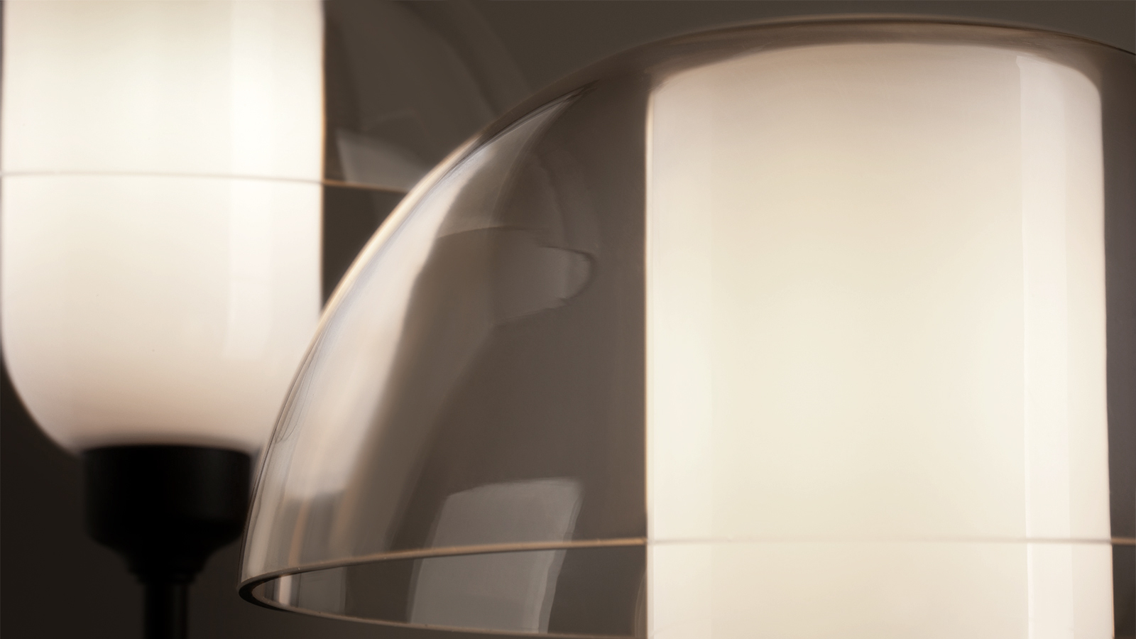 Сочетание внутреннего плафона из белого полупрозрачного стекла и внешнего из прозрачного обеспечивает мягкое и яркое свечение, а так же создает легкое и сбалансированное ощущение от световой композиции благодаря изящным бликам
