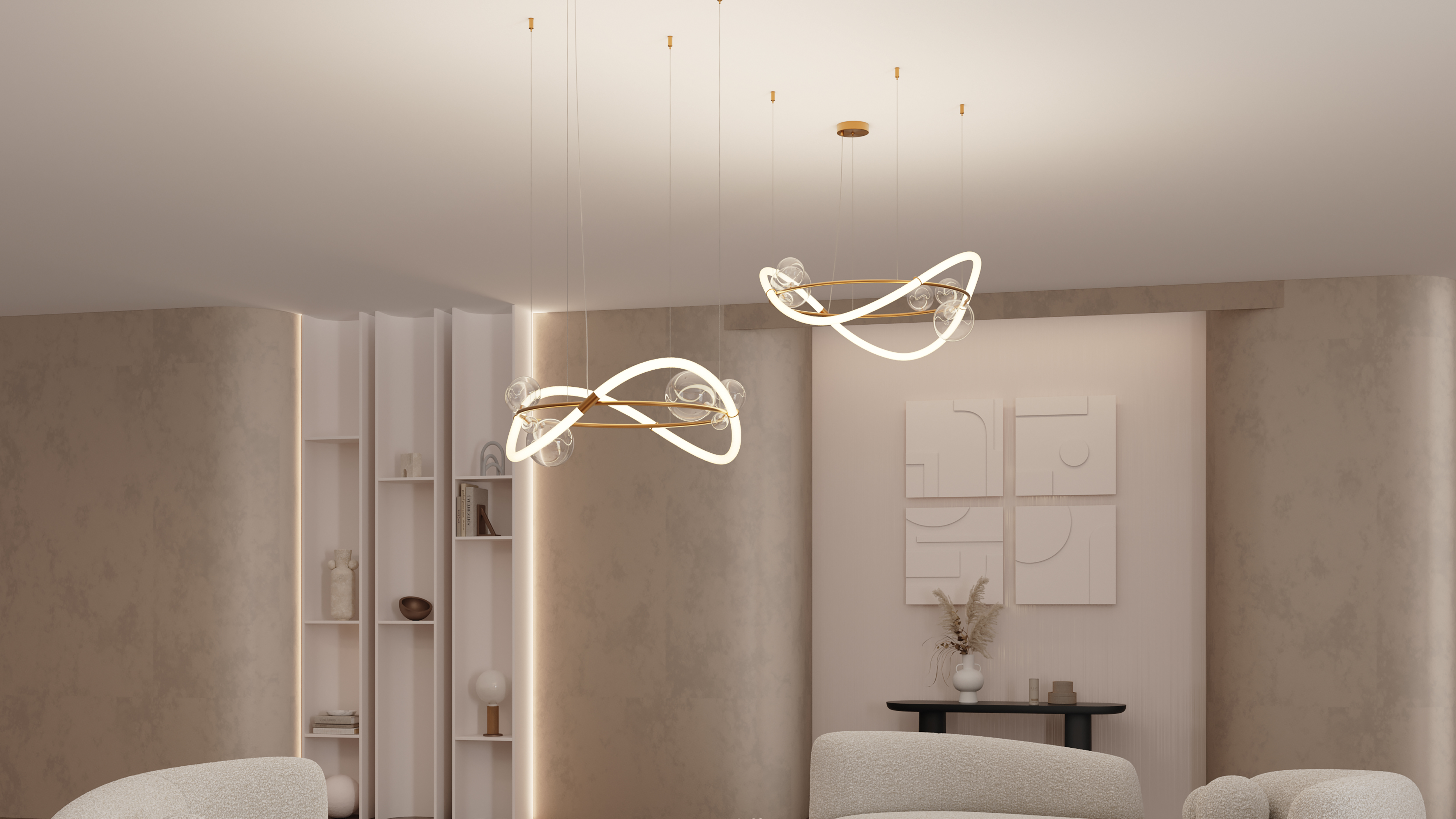 Значительный световой поток и угол рассеивания 360° позволяет подвесам и бра выполнять функцию основного источника света. А изящные гибкие формы украсят собой пространство .