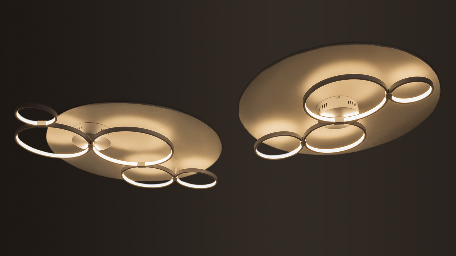 В качестве материала корпусов использован металл с декоративным покрытием белого и никелированного цветов. Светодиодные источники света закрыты опаловым рассеивателем. Возможность выбора необходимой цветовой температуры 3000К или 4000К на этапе монтажа. Серия представлена моделями разных размеров.