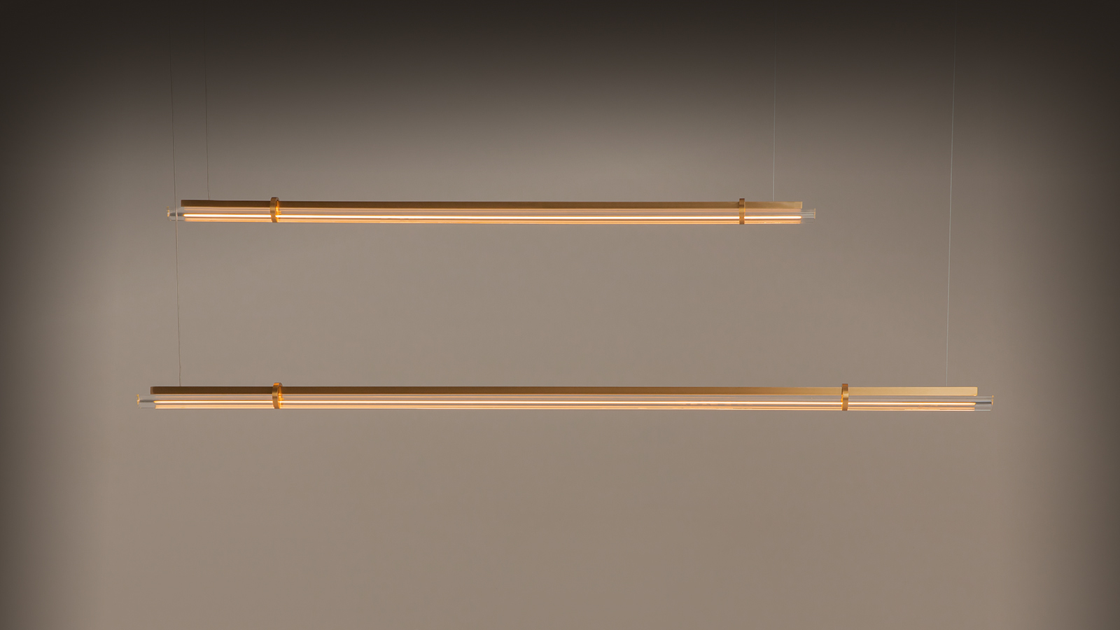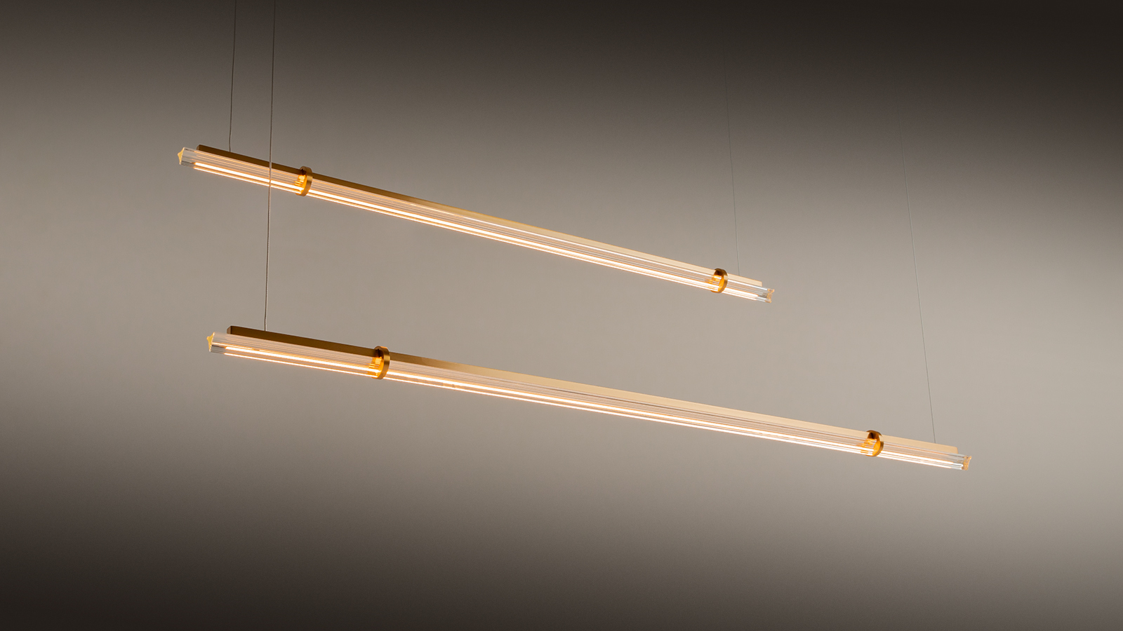 Тонкие трубки светодиодных светильников дополняются блестящей яркой арматурой с сатинированным покрытием.