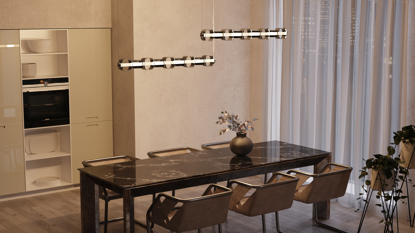 Наличие вертикальных и горизонтальных моделей в сочетании с возможностью регулировки высоты подвеса — возможность создавать разнообразные световые композиции, настраиваемые под любой интерьер и настроение.