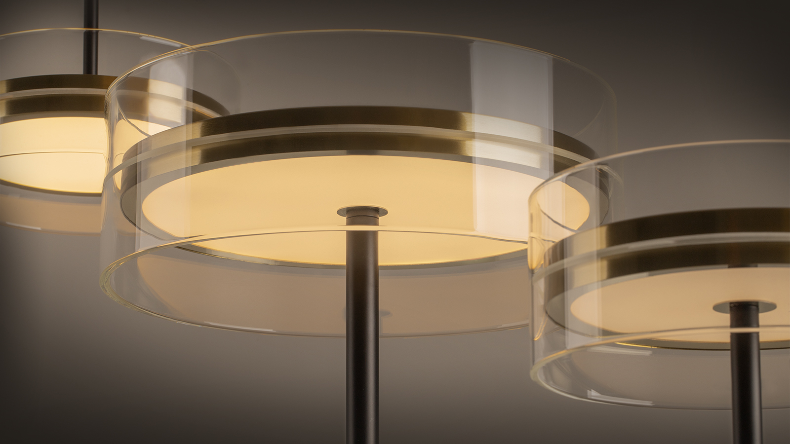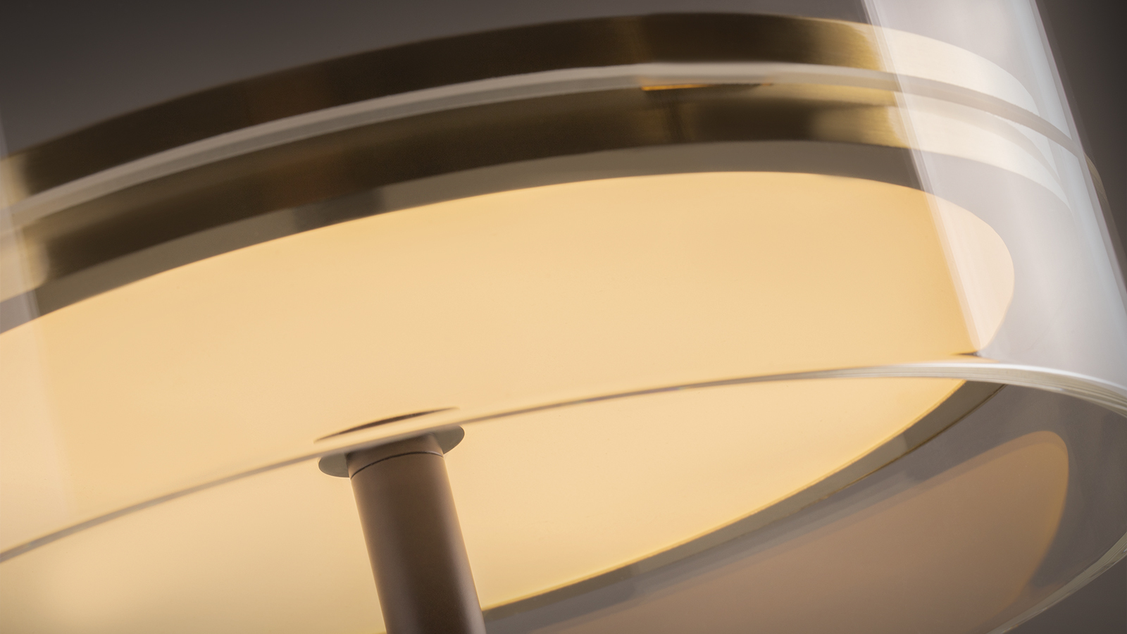 Встроенный LED источник обеспечивает равномерный световой поток по всему периметру плафона. В серию входят 2 диаметра подвесных светильников, потолочный светильник, напольный торшер, а также компактная настольная лампа - все с функцией диммирования для регулировки яркости светового потока.