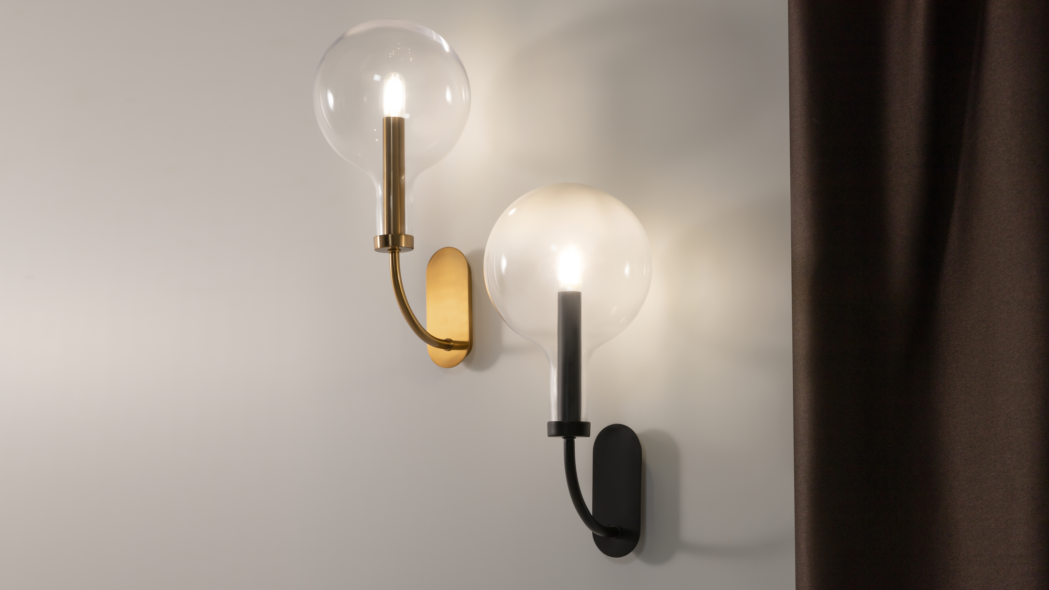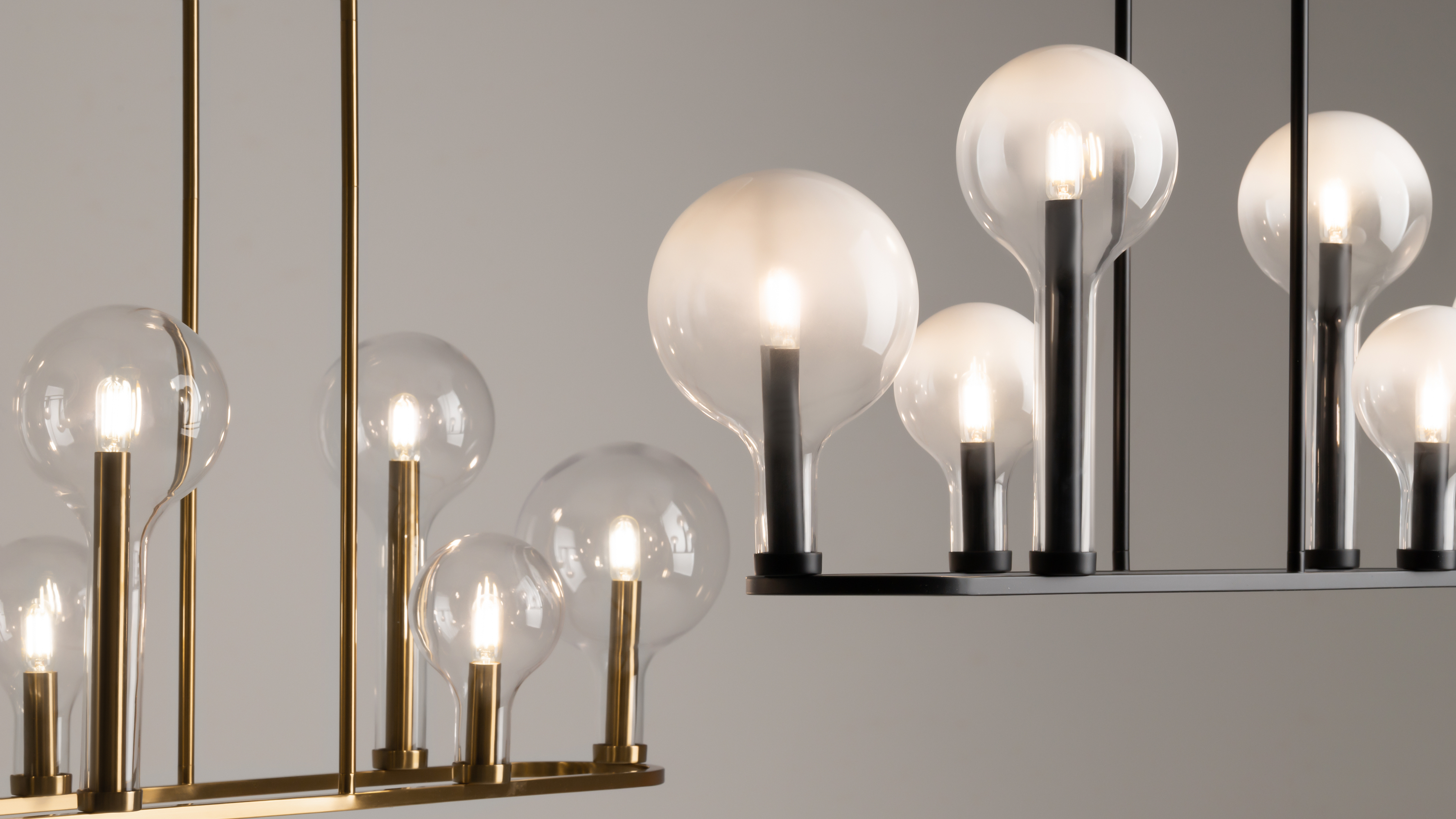 Модели представлены в двух цветовых решениях, которые легко приспосабливаются как к технологичному минимализму, так и незыблемой классике: черная арматура и белые градиентные плафоны, арматура в цвете латуни и прозрачные плафоны.
