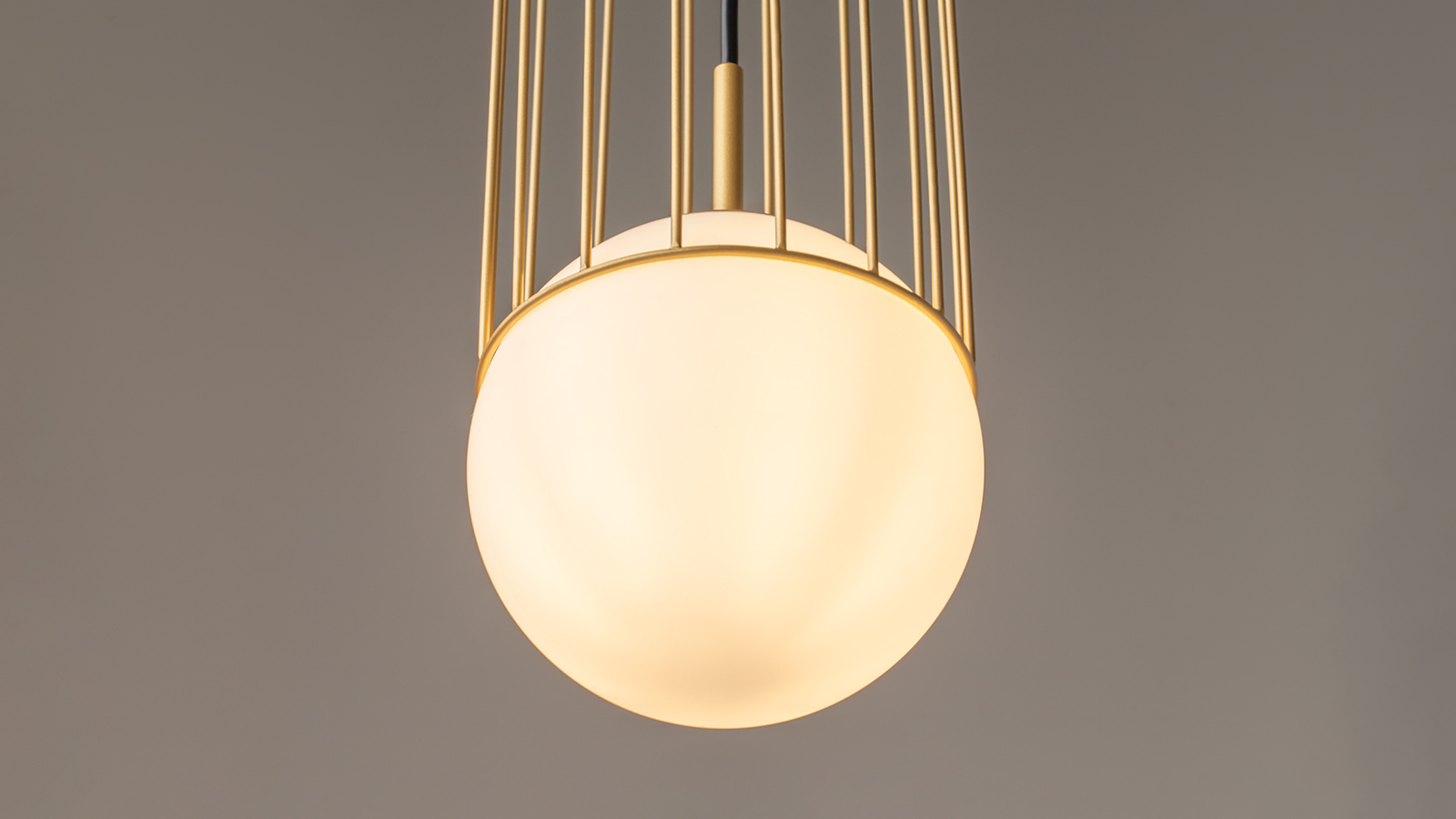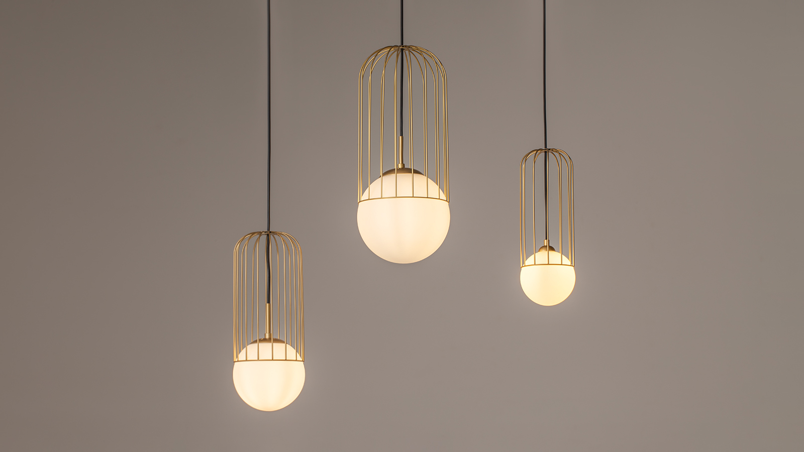 Конструкция светильников представляет собой матовый стеклянный плафон, сверху которого закреплена декоративная пространственная решетка из стальной проволоки. Модели серии представлены в трех разных размерах: диаметром 120, 150 и 200 мм.