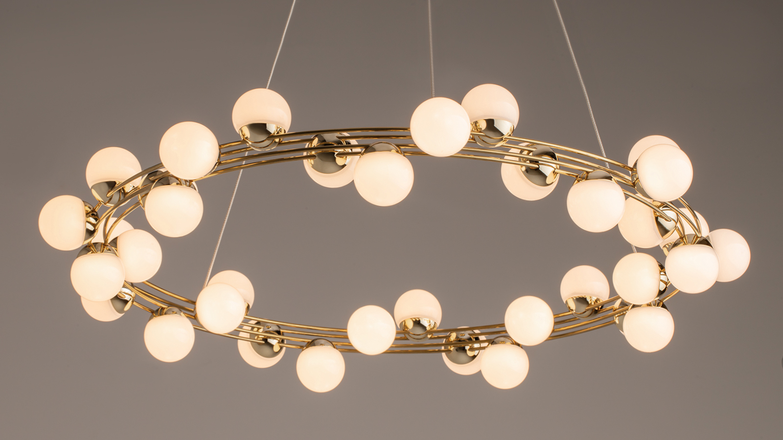 Одна из характерных черт подобных светильников — невесомость конструкции. За счет тонких, практически невидимых тросов, которые регулируются по высоте, создается ощущение, что люстра парит в воздухе. В серии представлены потолочный светильник , подвесные на 1 и 2 яруса, настольный и настенный светильники. LED источник света, цветовая температура - 3000К.