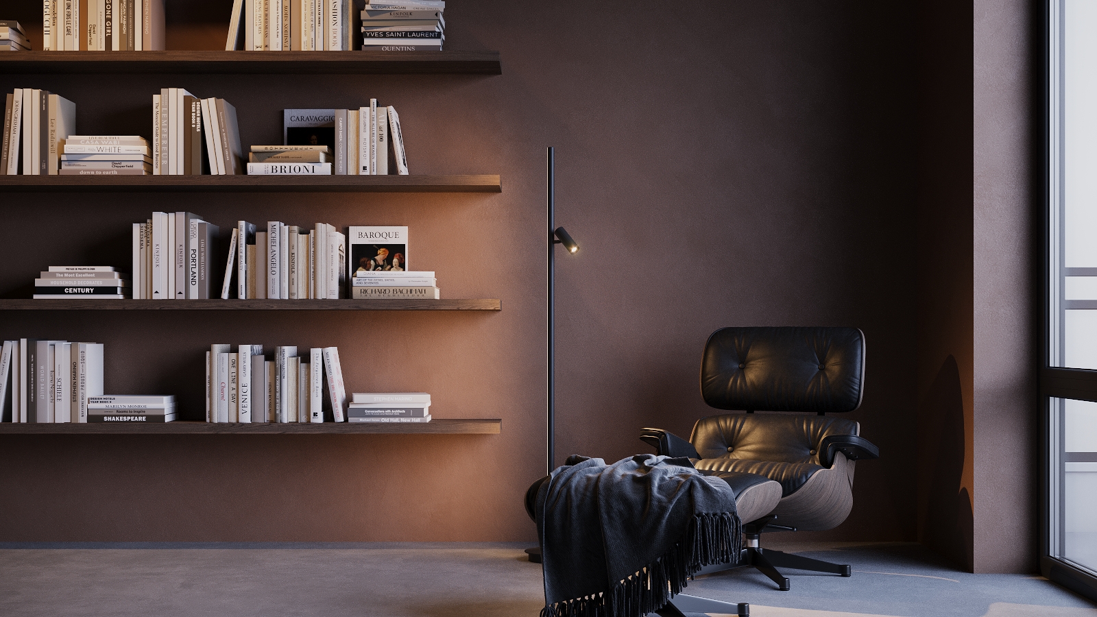 С помощью переотраженного света можно создавать необычные световые сценарии, особенно впечатляюще такое освещение работает в интерьерах с фактурными стенами, подчеркивая текстуру поверхностей и наполняя пространство мягким, уютным светом. Торшеры доступны в двух цветовых решениях — классическом черном и элегантном латунном.